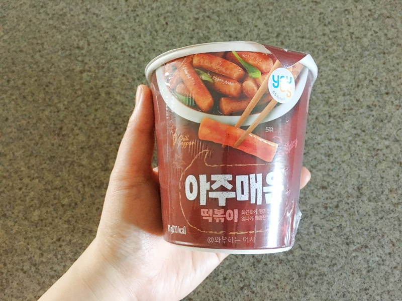 며칠 전 GS편의점에서 간단한 간식거리 살거없나..... 둘러보던 중 <아주매운 떡볶이>를 발견하고선 하나 집어왔어요~ 가격도 엄청 싸고 사이즈도 작아서 정말 딱 간식용으로 좋아보였거든요^^