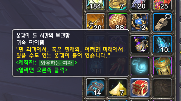 ④ 4가지 중 가장 적은 확률로 '잃어버린 시간의 상인'이 나타나 구하기 힘든 재봉도안을 살 수 있음