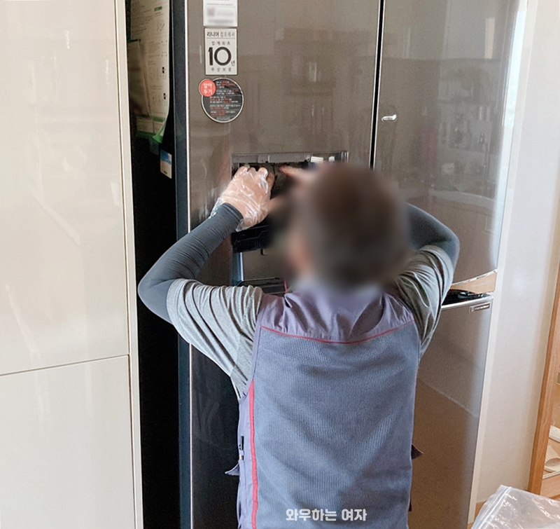 그동안 3개월에 한 번씩 LG 케어 매니저님이 방문하셔서 청소 및 필터교체해주시면서 관리해주셨는데, 지난주에 방문점검해주시더니 얼음추출구쪽에 곰팡이가 생기기 시작했으니 부품교체 서비스를 받으라고 알려주시더라고요.