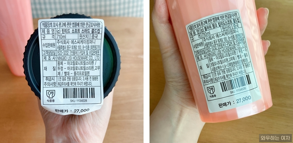 오른쪽 투고 텀블러랑 비교해보면