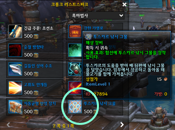 반드시 각 함선마다 '투스카르 낚시 그물'을 장착해줘야 한다는 것!